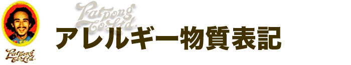 (有)Patpongでは食物アレルギー物質の項目について,食品衛生法で表示が義務づけられている特定原材料の8品目,および特定原材料に準ずるものとして定められた20品目,合わせて28品目に関して表示しています。